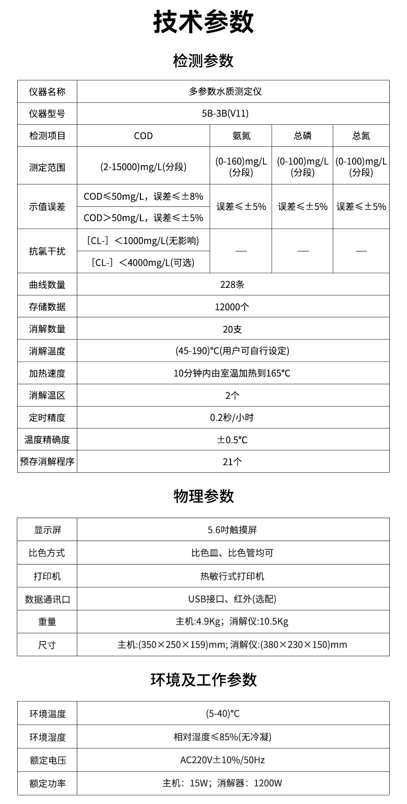 1、五十余項參數指標:直接測定化學需氧量(COD)、氨氮、總磷、總氮、懸浮物、色度(鉑鈷色系)、濁度、重金屬、有機污染物和無機污染物等多項指標,濃度直讀;