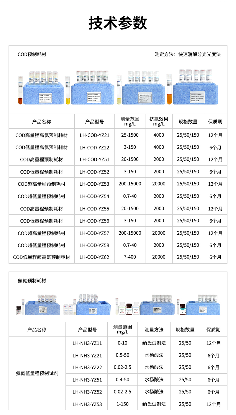 試劑名稱:COD低量程超高氯預(yù)制耗材